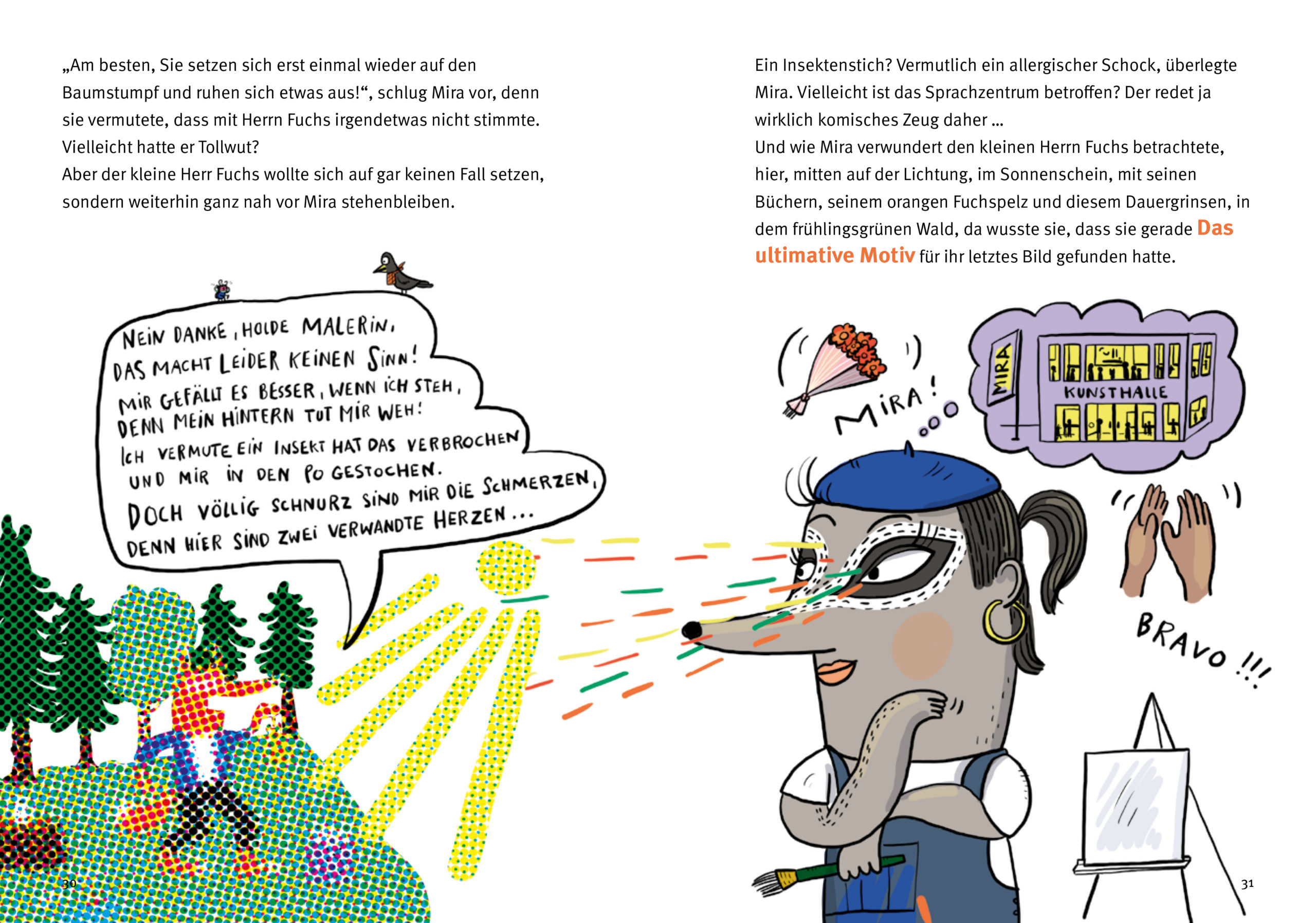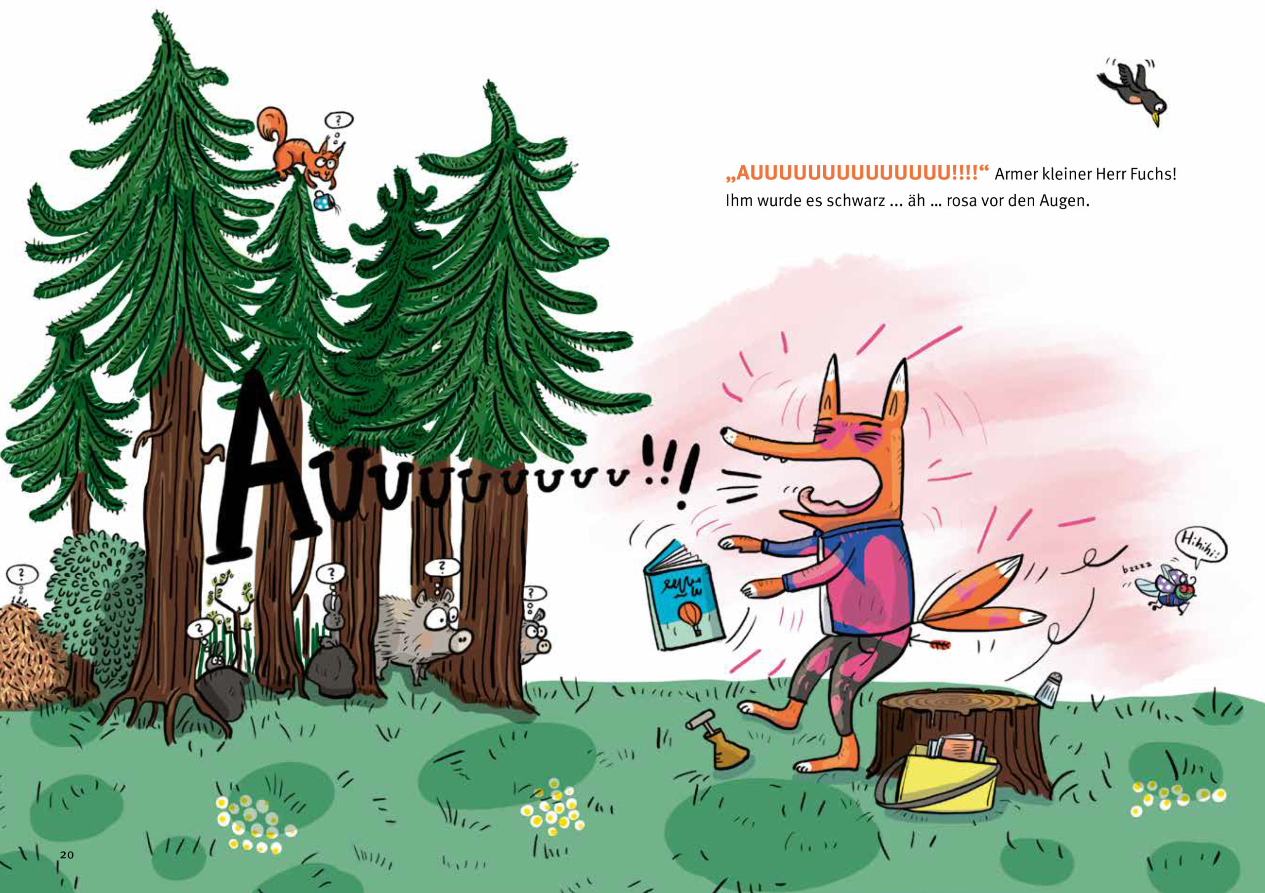 Herr Fuchs, der weltbekannte Autor, schreibt nicht nur Bücher, er verputzt sie nach dem Lesen auch gerne mit einer Priese Salz und Pfeffer. Eigentlich sollte er dringend sein neues Buch fertig schreiben. Doch seit ihm im Frühlingswald ein seltsames Insekt in den Po gestochen hat, ist nichts mehr, wie es war: