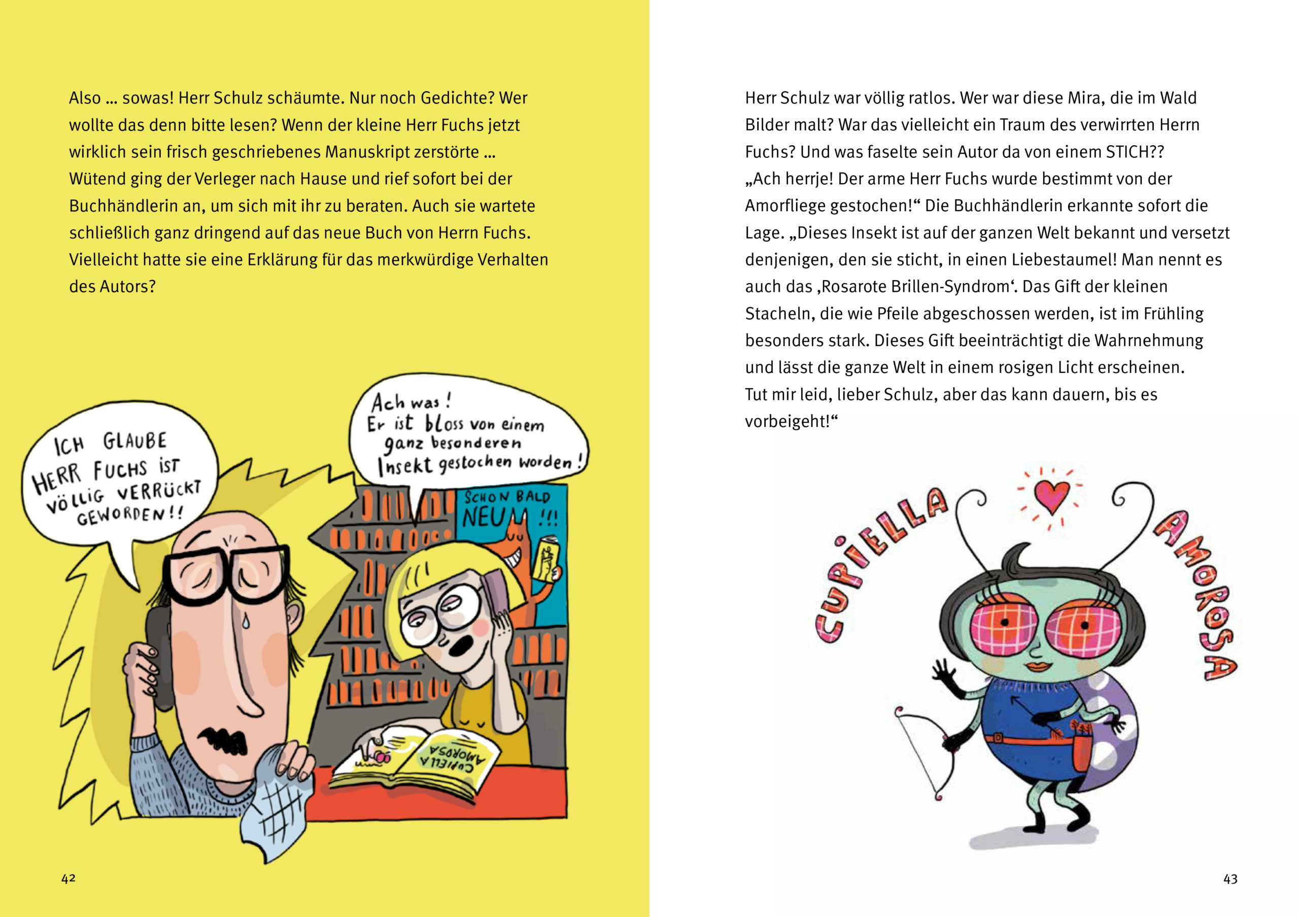 Herr Fuchs hat Bücher zum Fressen gern. Am besten schmecken ihm seine eigenen. Bei einem Waldspaziergang sucht Herr Fuchs deshalb nach Inspiration für sein nächstes Buch. Autsch! Da sticht ihn doch glatt die Amor-Fliege mitten in den Po. Völlig verknallt in Malerin Mira, die coolste Dächsin überhaupt, kann Herr Fuchs jetzt nur noch Gedichte schreiben. Doch Poesie, so fürchtet sein Verleger, lässt sich nicht verkaufen. Ein Entliebungsplan muss dringend her!